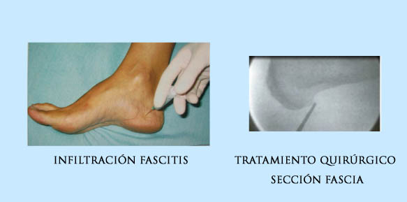 Además de añadir tratamiento rehabilitador, fisioterapia y láser con la finalidad de disminuir la inflamación y potenciar los pequeños músculos del pie para que presten soporte a la fascia plantar debilitada. En algunas ocasiones es necesario tratar con infiltraciones con corticoides y anestésicos locales que pueden ser muy eficaces en casos resistentes.